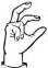 На ћирилици написано СОФИЈА БИЗУМИЋ састоји се из 13 слова [?]. Исписано ћириличном једноручном азбуком за глувонеме: